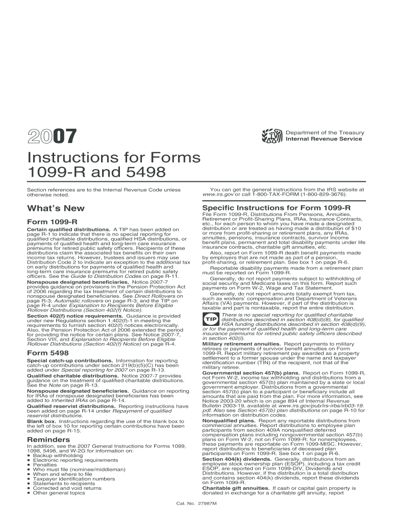 What are the IRS Instructions for Forms 1099-R and 5498?