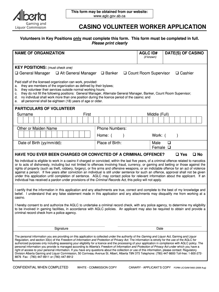 Get the free Casino Volunteer Worker Application