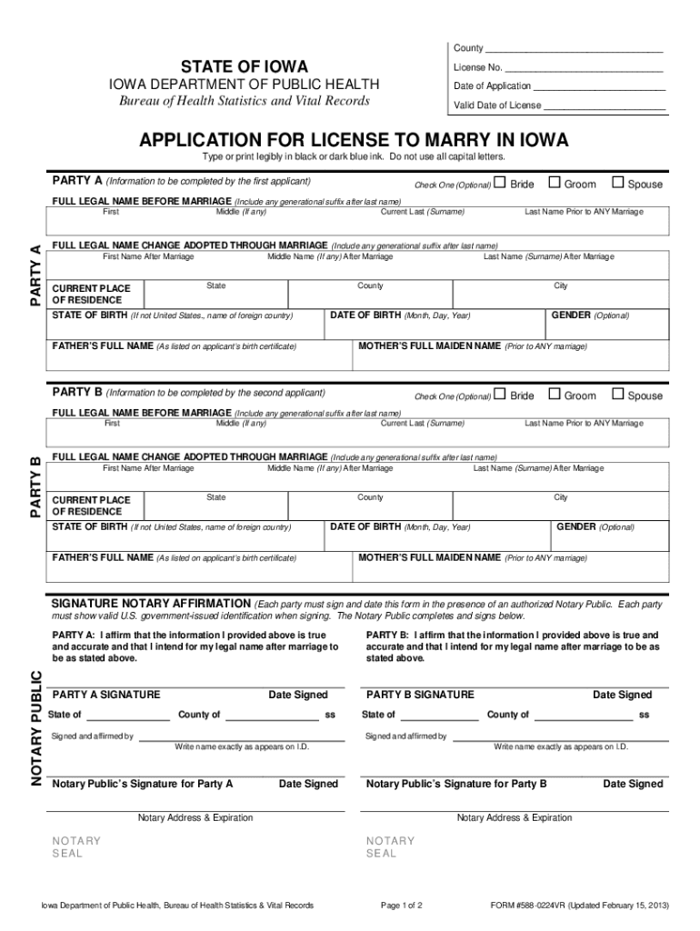 STATE OF IOWA MARRIAGE INSTRUCTIONS IT IS THE RESPONSIBILITY OF APPLICANTS TO READ THIS CAREFULLY BEFORE MAKING APPLICATION! General Information: In Iowa, a license to marry may be applied for only
