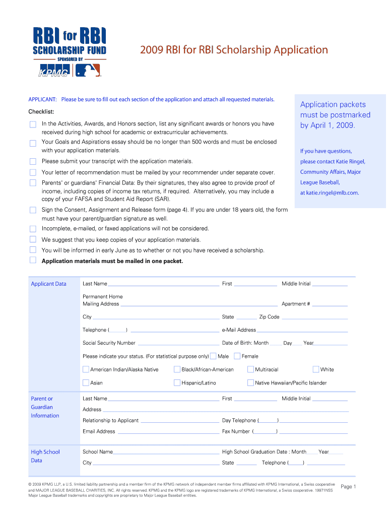Get the free 2009 RBI for RBI Scholarship Application