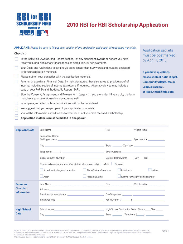 Get the free 2010 RBI for RBI Scholarship Application