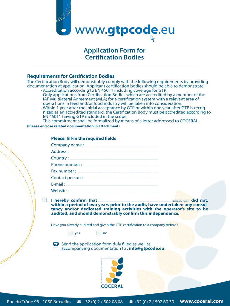 Get the free Application Form for Certification Bodies