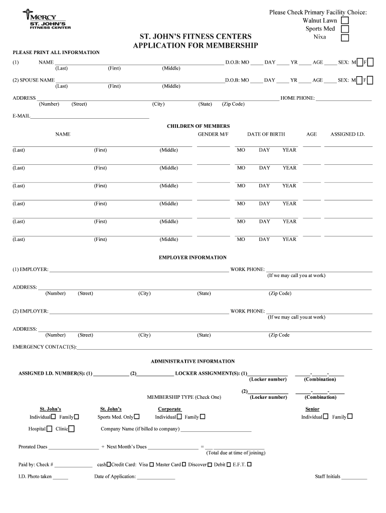 Get the free ST. JOHN’S FITNESS CENTERS APPLICATION FOR MEMBERSHIP