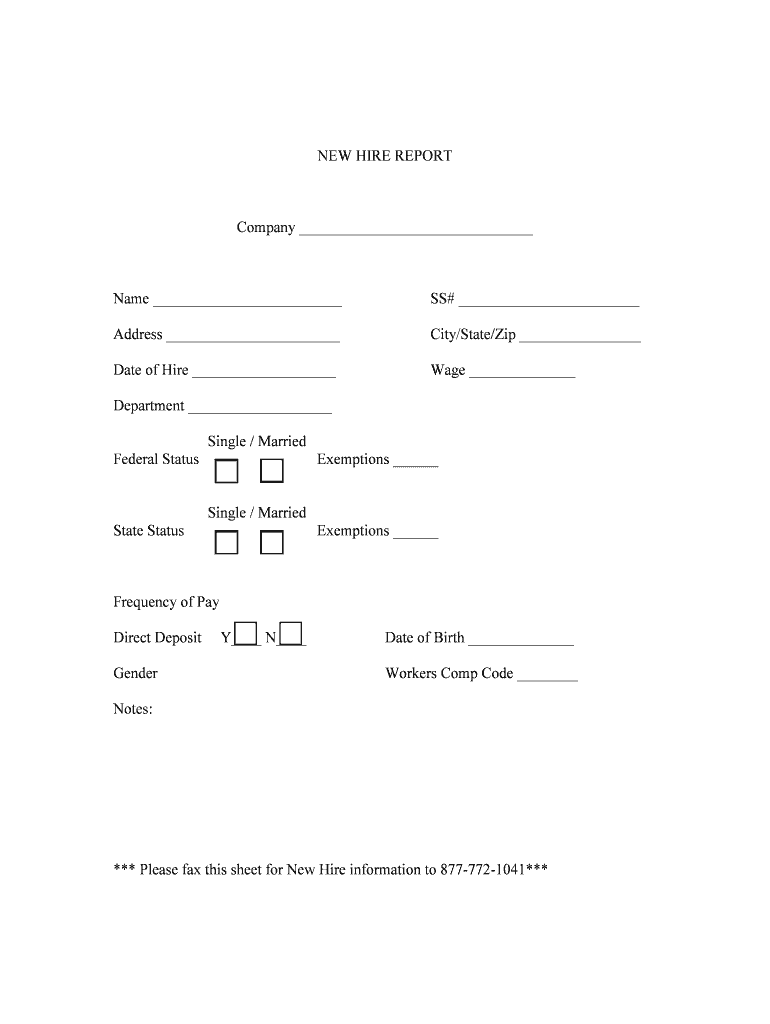 A new hire report is a submission of information to a US state about a new or rehired employee in that state. The employee can be completely new to you, or he or she may have worked for you previously but stopped being your employee for at least 60 consecutive days.