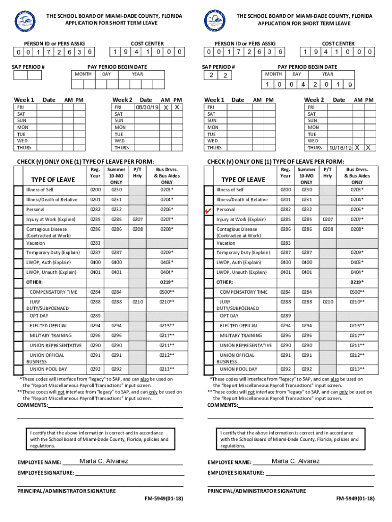 Get the free APPLICATION FOR SHORT TERM LEAVE - ehandbooks dadeschools