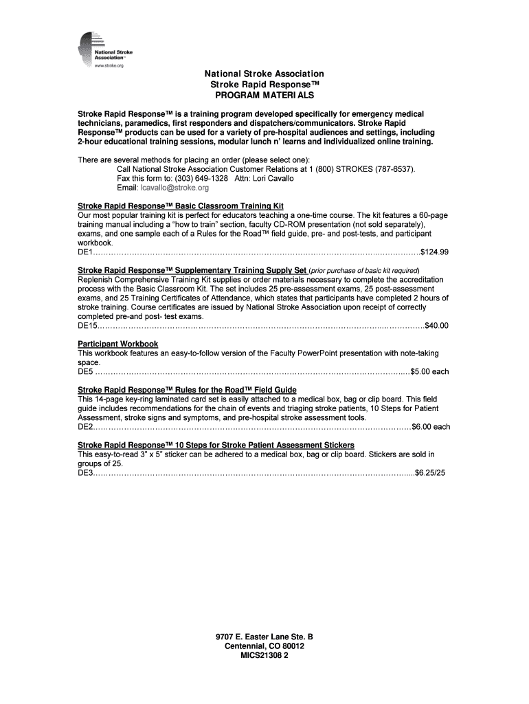 National Stroke Association Stroke Rapid Response PROGRAM MATERIALS Stroke Rapid Response is a training program developed specifically for emergency medical technicians, paramedics, first responders