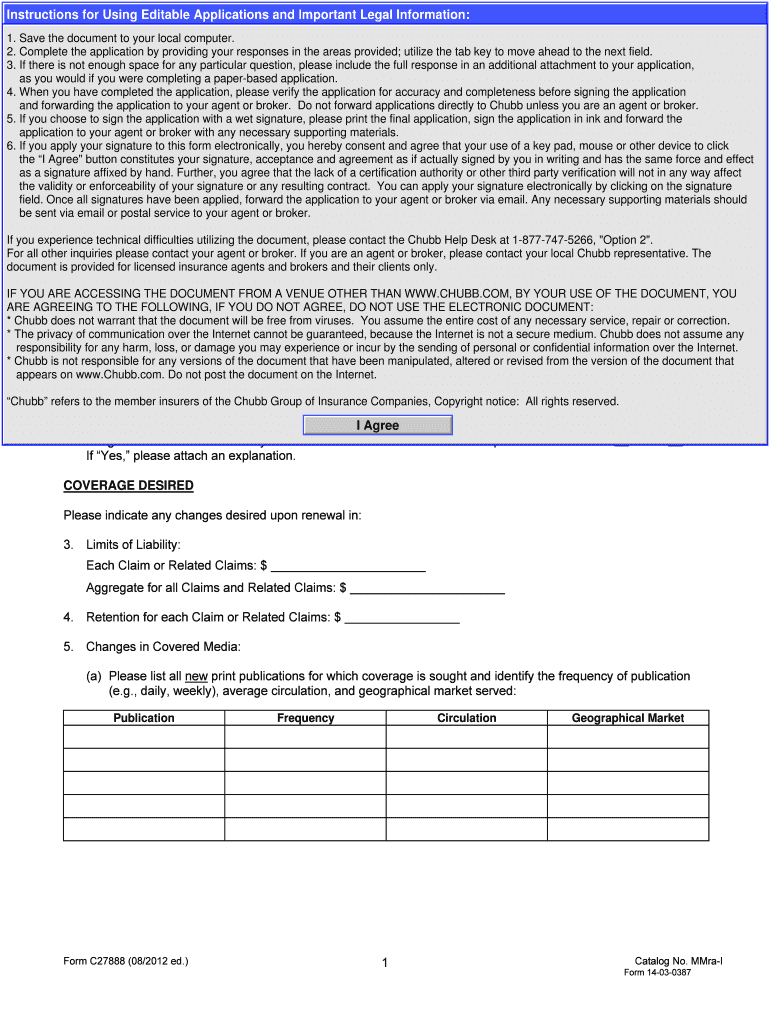 Field-by-Field Instructions for the Multimedia Liability Insurance Renewal Application