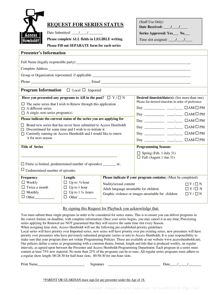 Get the free Application for Series Status Form.pdf - Access Humboldt