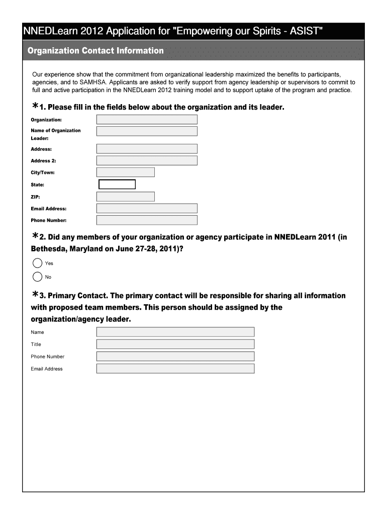 Relearn 2012 Application for Empowering our Spirit — ASSIST” Instructions The National Network to Eliminate Disparities in Behavioral Health (the NEED), supported by the Substance Abuse and Mental