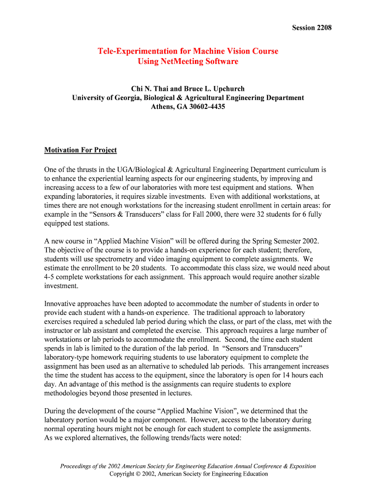 Get the free Tele-Experimentation for Machine Vision Course Using NetMeeting Software. 2208