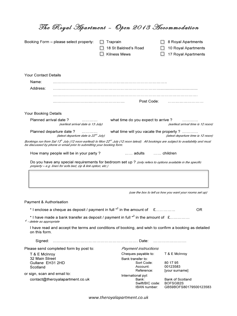 Edit your royal apartment booking form form online