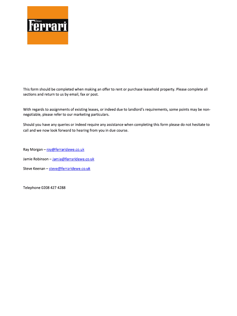 Get the free Leasehold proposal form - Ferrari Dewe