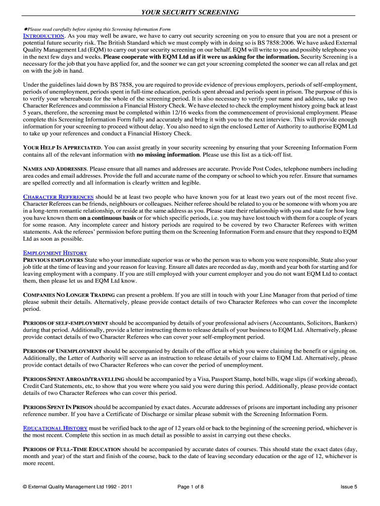 Get the free Screening Information Form - EQM Ltd