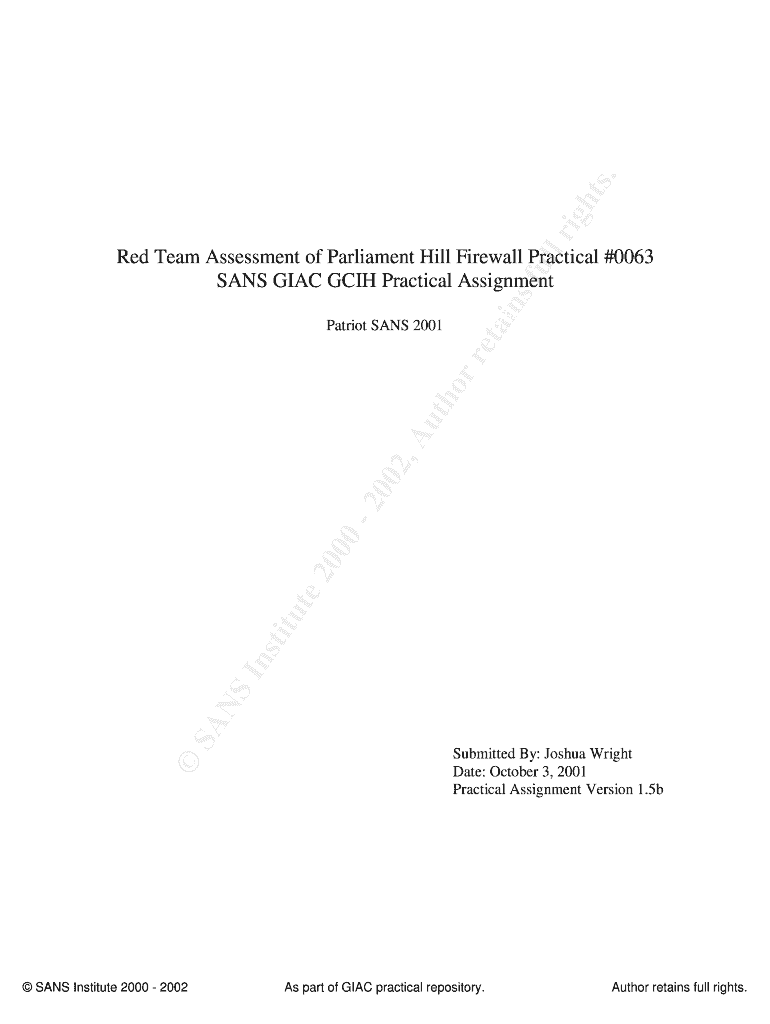 Get the free Red Team Assessment of Parliament Hill Firewall Practical #0063