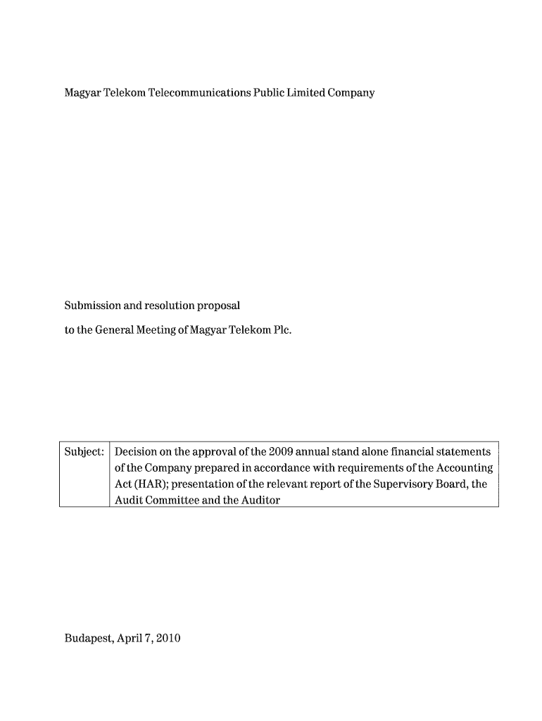 Get the free Submission and resolution proposal to the General Meeting of Magyar Telekom Plc.