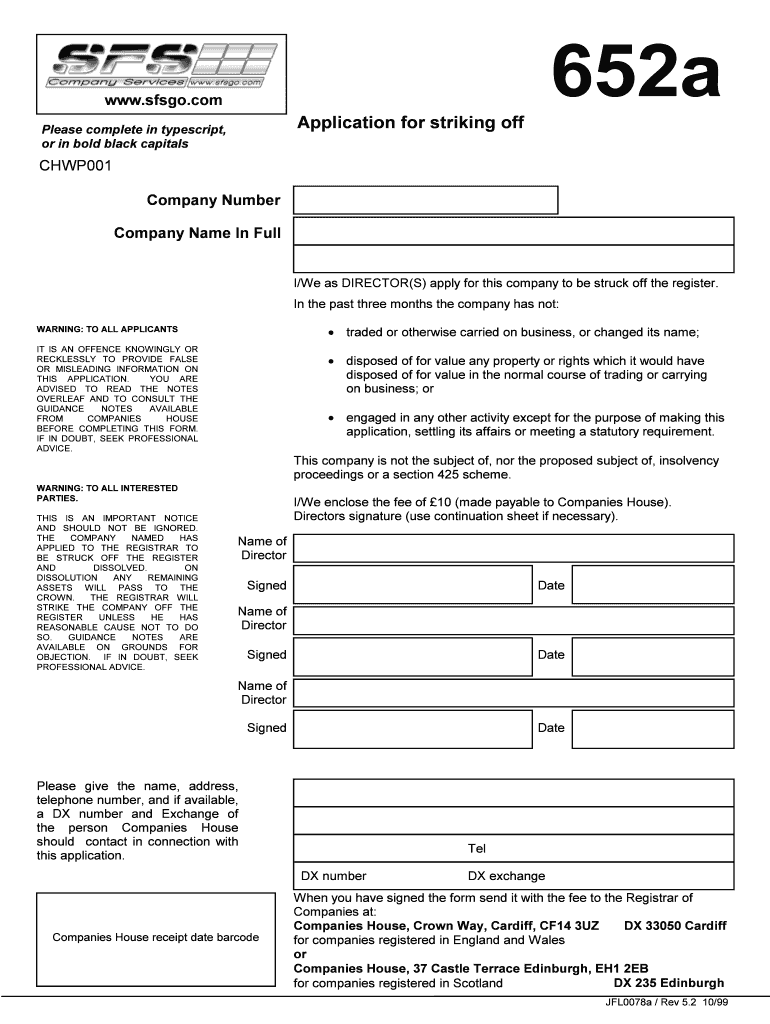 Get the free UK Company Strike Off Application Form