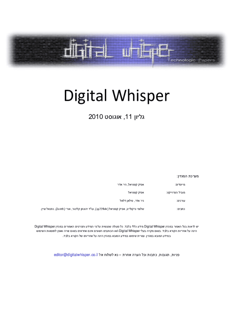 Digital Whisper ,11 2010 : : , : : , : , ( ,)cp77fk4r\" , ( ,)Zerith