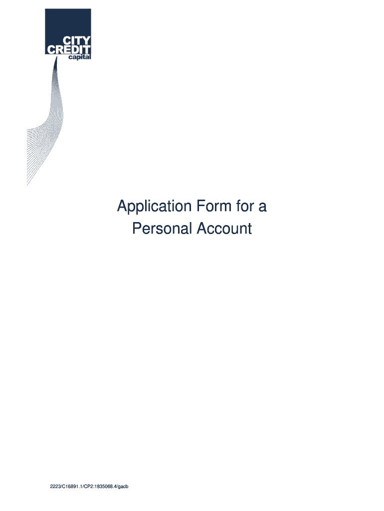 The Personal Account Application Form is a business document used by individuals to open a new account with City Credit Capital, requiring verification of personal identity and address.