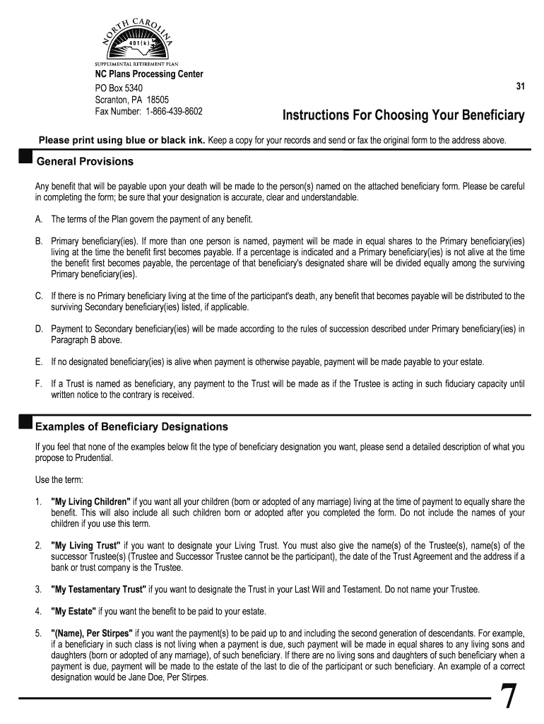 In completing the form; be sure that your designation is accurate, clear and understandable. A. The terms of the ... If a percentage is indicated and a Primary beneficiary(IES) is not alive at the