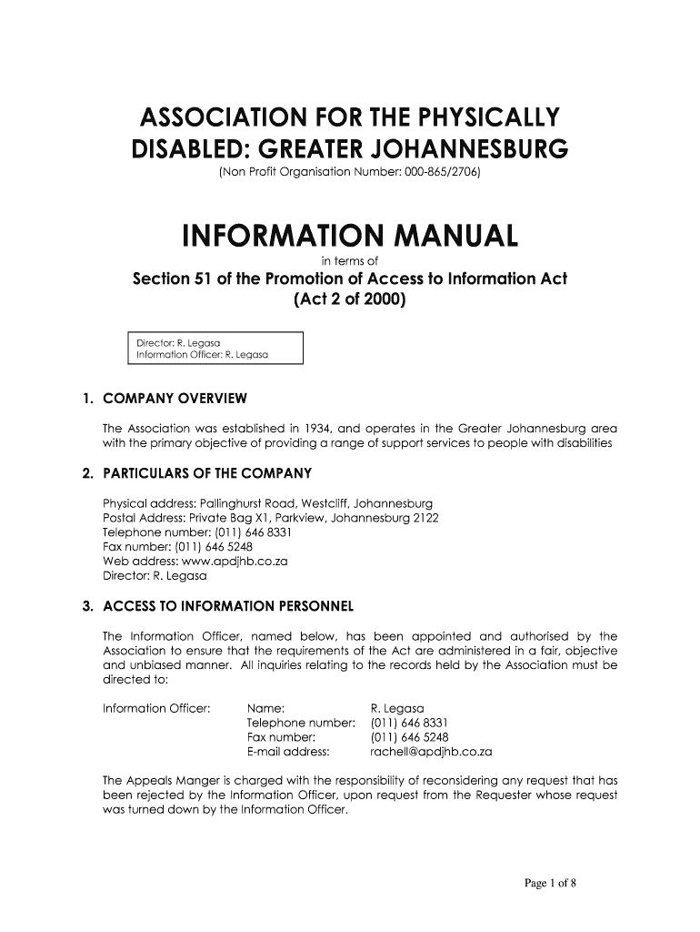 This document serves as an information manual detailing the policies and procedures related to access to information in accordance with the Promotion of Access to Information Act. It provides an overview