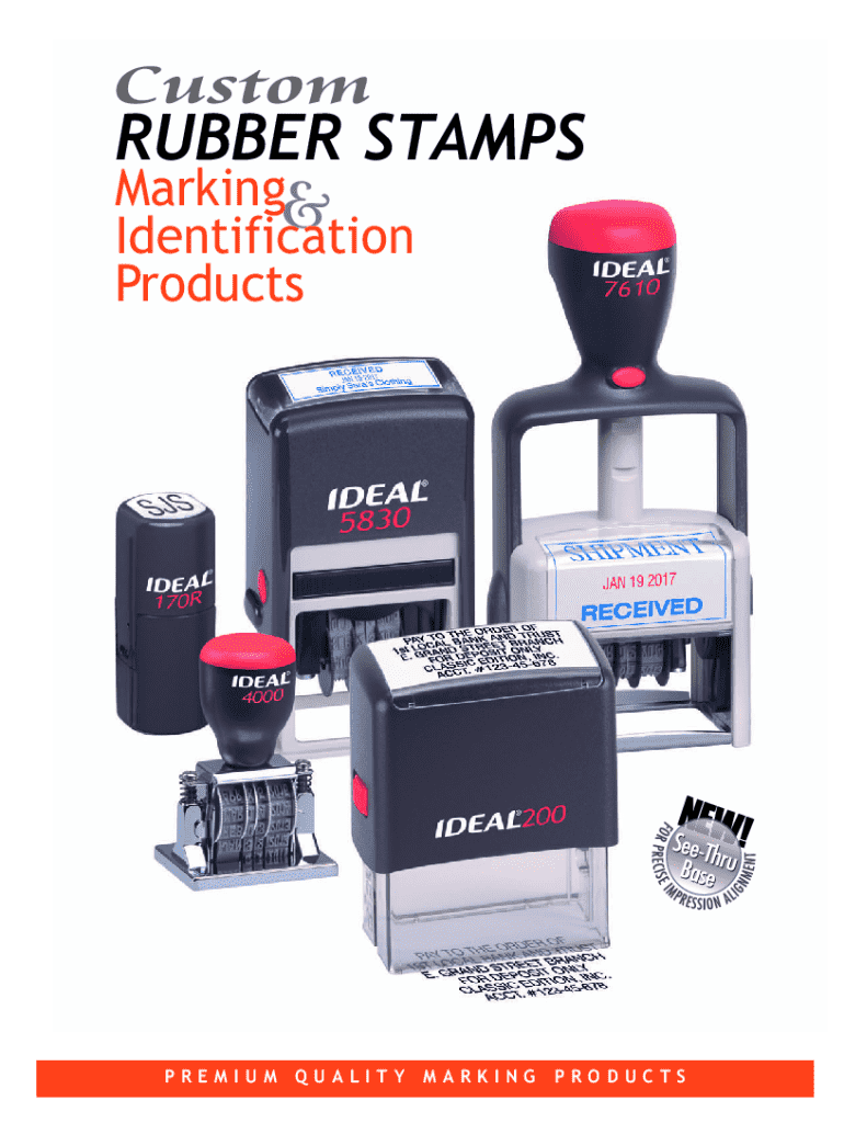 RUBBER STAMPSCustomMarking& Identification ProductsPREMIUMQUALITYMARKINGPRODUCTSPRODUIDEAL SelfInking Stamps . . . . . . . .1 IDEAL 5700 Series. . . . . . . . . . . .2Plastic SelfInking Stamps and