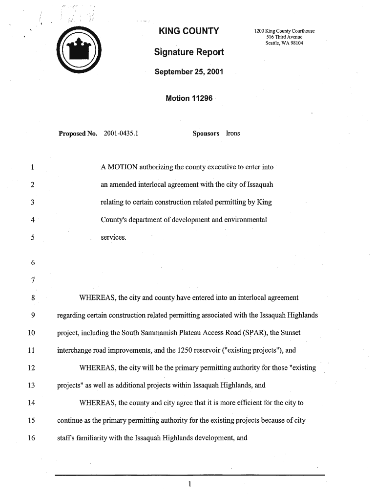 Get the free Signature Report - your kingcounty