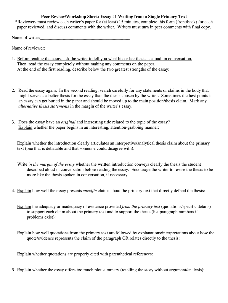 3.Before filling out the form, gather the essay to be reviewed, any grading criteria from the instructor, and notes from the reviewer perspective.