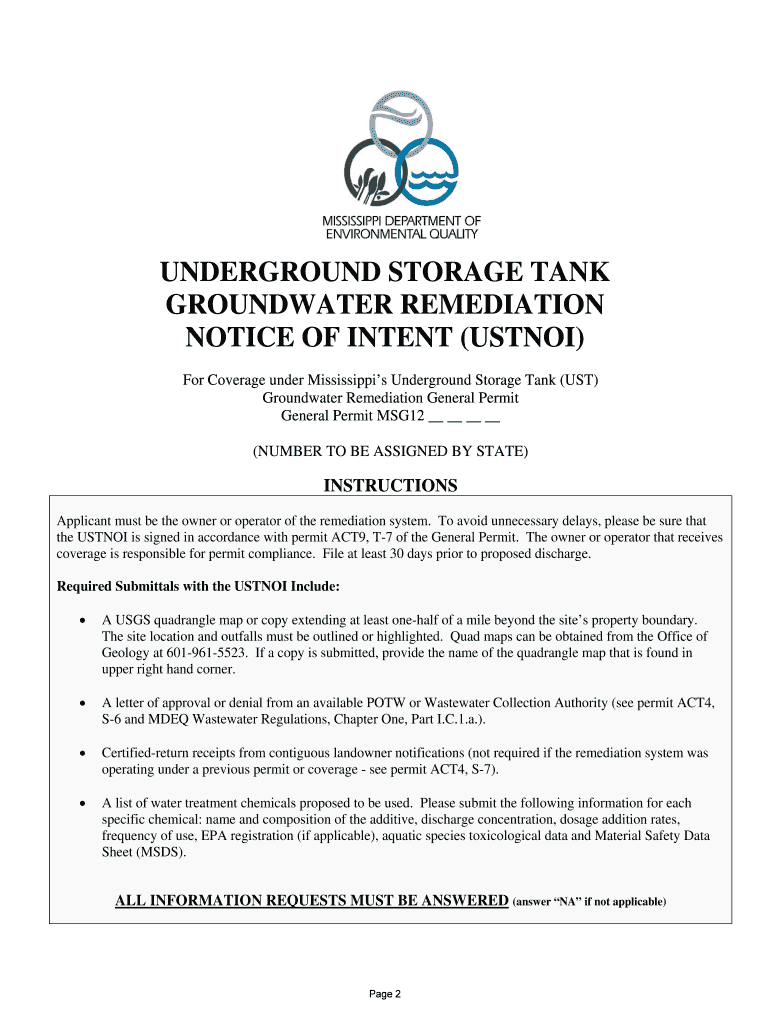 Get the free UST FORMS PACKAGE - deq state ms