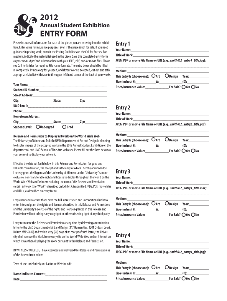 Get the free Annual Student Exhibition ENTRY FORM