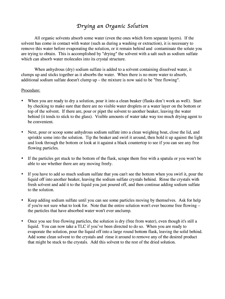 Get the free Drying an Organic Solution