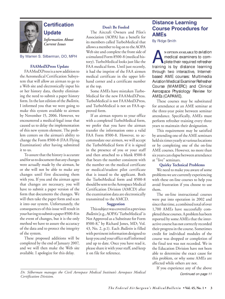 By Warren S. Silberman, DO, MPHFAAMedXPress Update