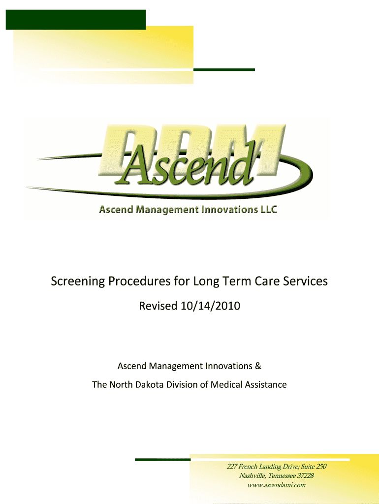 This manual provides guidance for Long Term Care Providers in North Dakota regarding the state and federal screening requirements for Long Term Care services. It includes information about Preadmission
