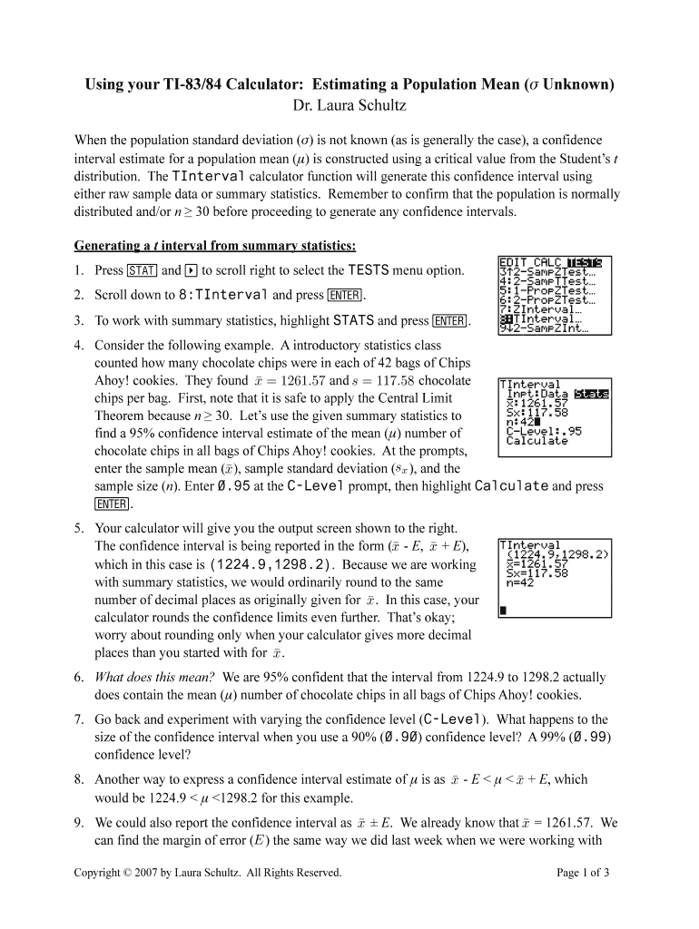Get the free Using your TI-83/84 Calculator: Estimating a Population Mean ( Unknown)