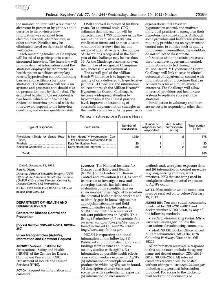 75169 Federal Register / Vol. 77, No. 244 / Wednesday, December 19, 2012 / Notices the nomination form with a reviewer or abs tractor in person or by phone, and to describe to the reviewer how information