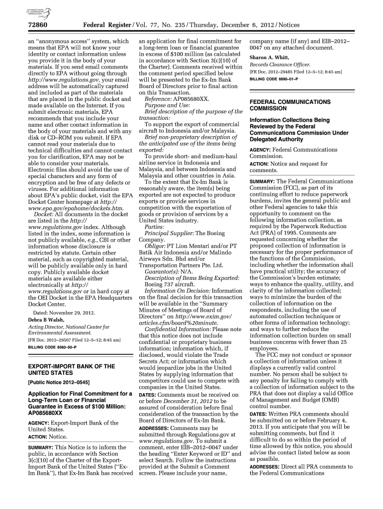 72860 Federal Register / Vol. 77, No. 235 / Thursday, December 6, 2012 / Notices an anonymous access system, which means that EPA will not know your identity or contact information unless you provide
