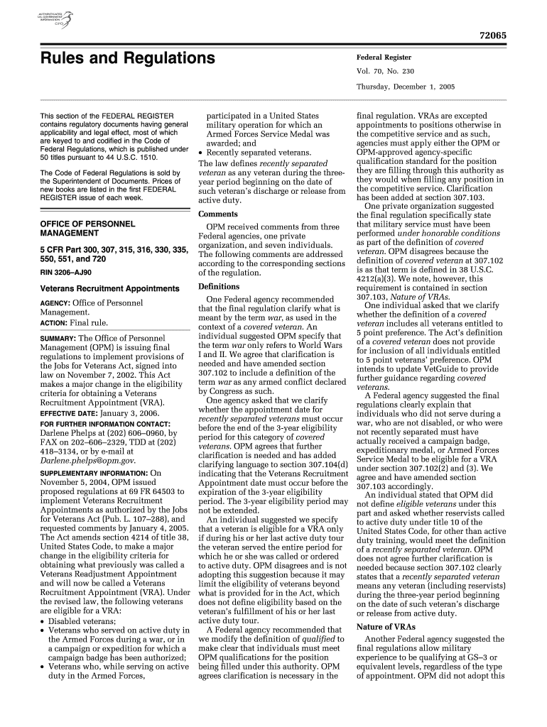 Thursday, December 1, 2005This section of the FEDERAL REGISTER