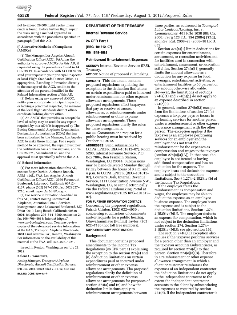 45520 Federal Register / Vol. 77, No. 148 / Wednesday, August 1, 2012 / Proposed Rules not to exceed 29,000 flight cycles. If any crack is found: Before further flight, repair the crack using a method