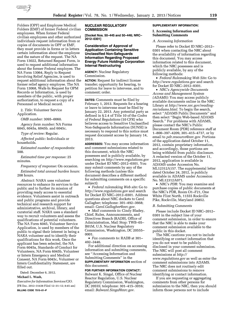 Federal Register / Vol. 78, No. 1 / Wednesday, January 2, 2013 / Notices