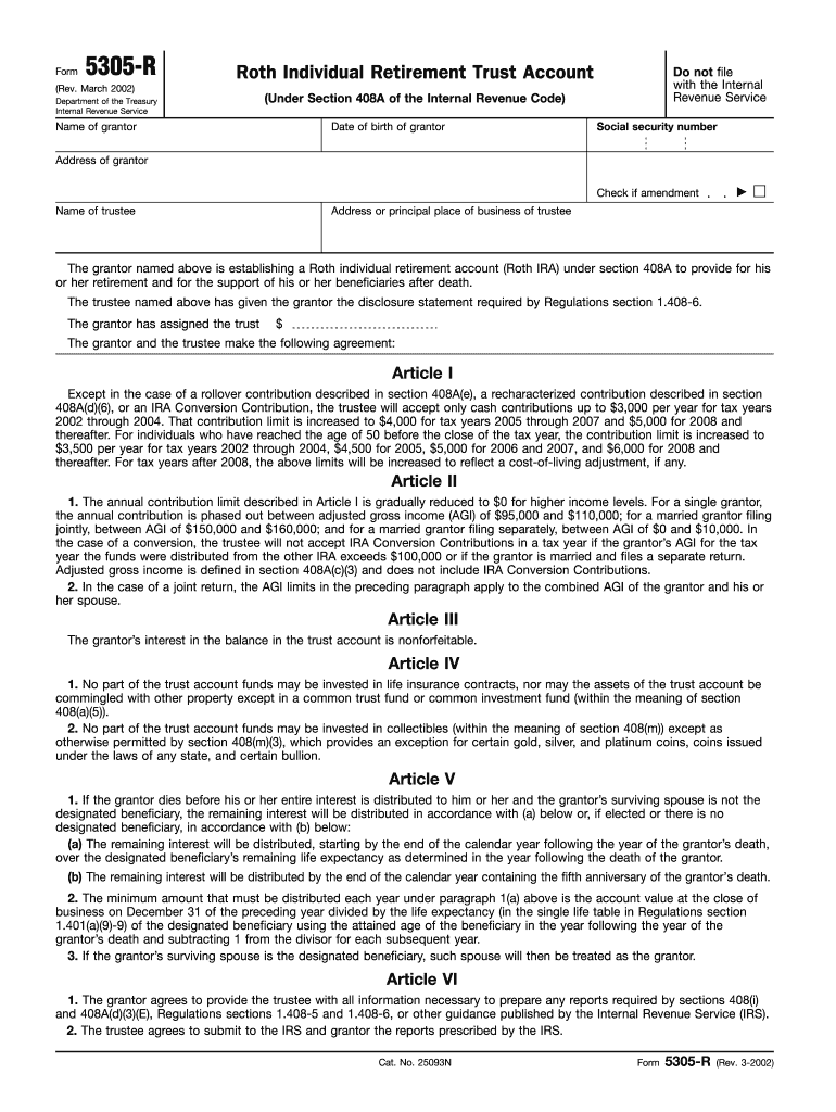 What is the Roth IRA Trust Account Form 5305-R?