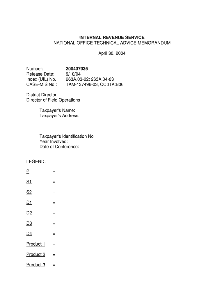 The IRS Technical Advice Memorandum is a document issued by the Internal Revenue Service to provide guidance on specific tax issues. Document 200437035 is particularly relevant as it addresses direct labor's role in allocating storage and handling costs under Section 263A of the Internal Revenue Code. This memorandum clarifies that direct labor should not be used as a base for these allocations, offering valuable insights into compliance and cost management for taxpayers.