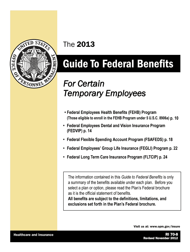 Temporary federal employees who meet specific eligibility criteria set by federal regulations are required to file the Guide to receive information about their benefits and entitlements.