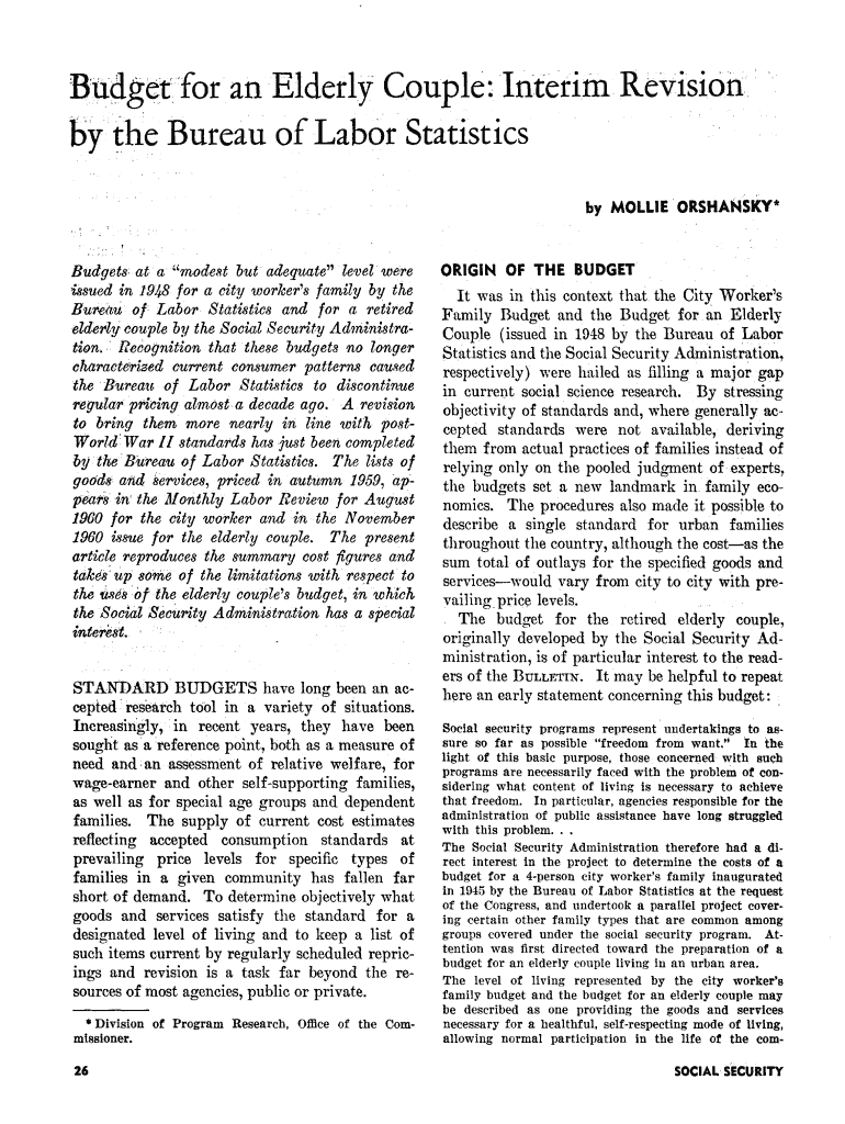 Get the free Budget for an Elderly Couple: Interim Revision by ... - Social Security - ssa