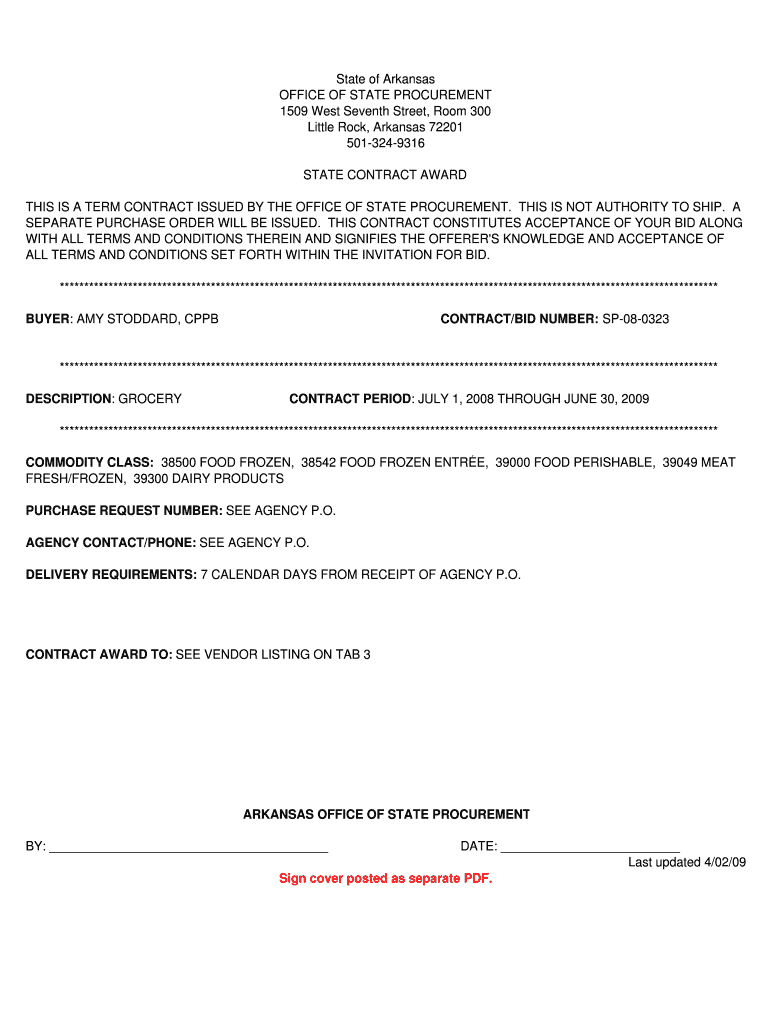 Get the free THIS IS A TERM CONTRACT ISSUED BY THE OFFICE OF STATE PROCUREMENT - state ar