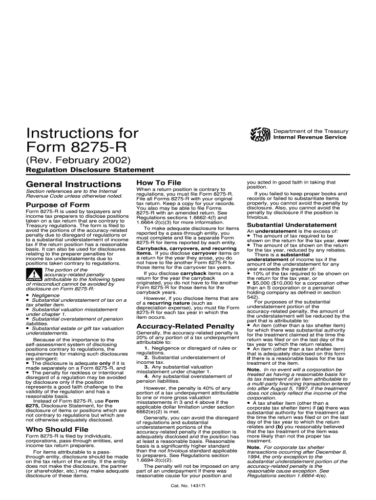IRS Form 8275-R is a regulation disclosure statement utilized by taxpayers and income tax preparers in the United States. This tax form serves to disclose positions taken on a tax return that are contrary to Treasury regulations. Since its introduction in 2002, it has become an essential component of tax compliance.