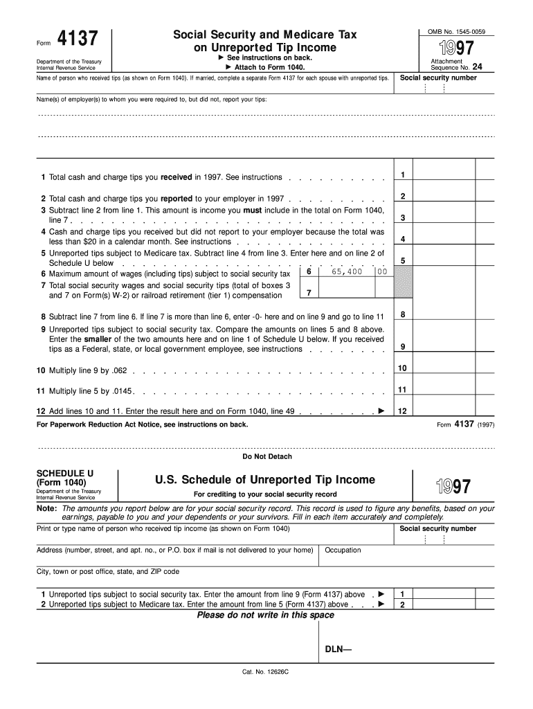 IRS Form 4137 is a specific tax document utilized to report unreported tip income for the tax year 1997. This form is designed for employees who received cash and charge tips exceeding $20 in a calendar month and failed to report these earnings to their employer. The primary purpose of Form 4137 is to ensure accurate reporting of tip income to the IRS, thereby facilitating the calculation of social security and Medicare taxes owed. In addition, it helps taxpayers avoid penalties associated with underreporting their income.
