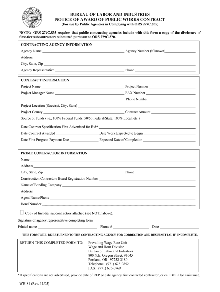 OR WH-81 2005 free printable template