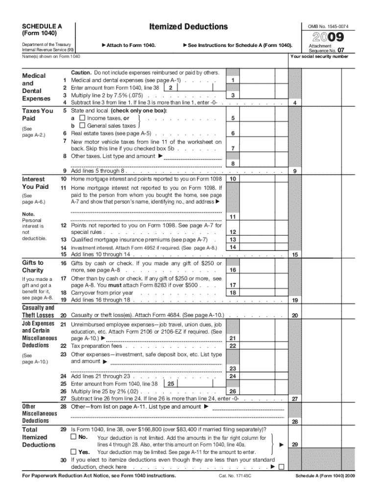 Get the free 2009 Form 1040 (Schedule A). Itemized Deductions