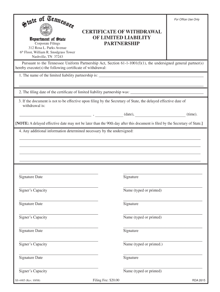 Get the free CERTIFICATE OF WITHDRAWAL OF LIMITED ... - Tennessee.gov - tn