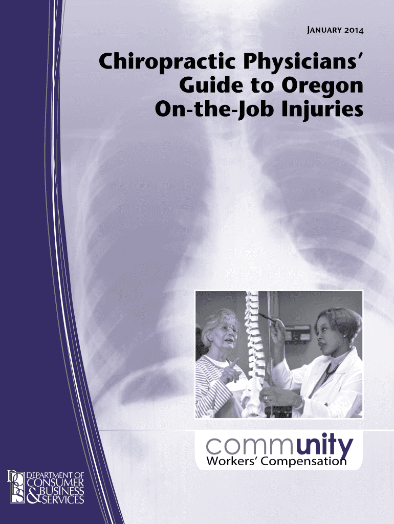 Start by downloading the Chiropractic Physicians’ Guide to Oregon On-the-Job Injuries from the official website.