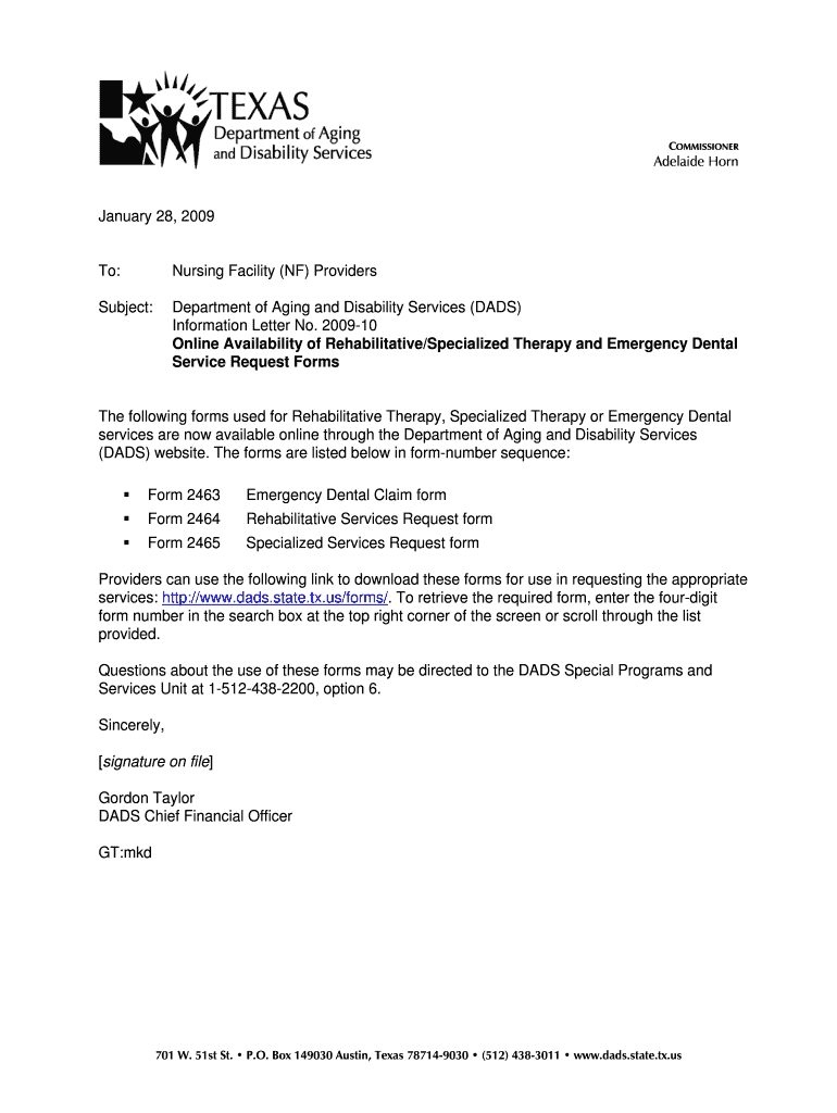 Get the free DADS Information Letter No. 2009-10: Online Availability of Rehabilitative/Specializ...